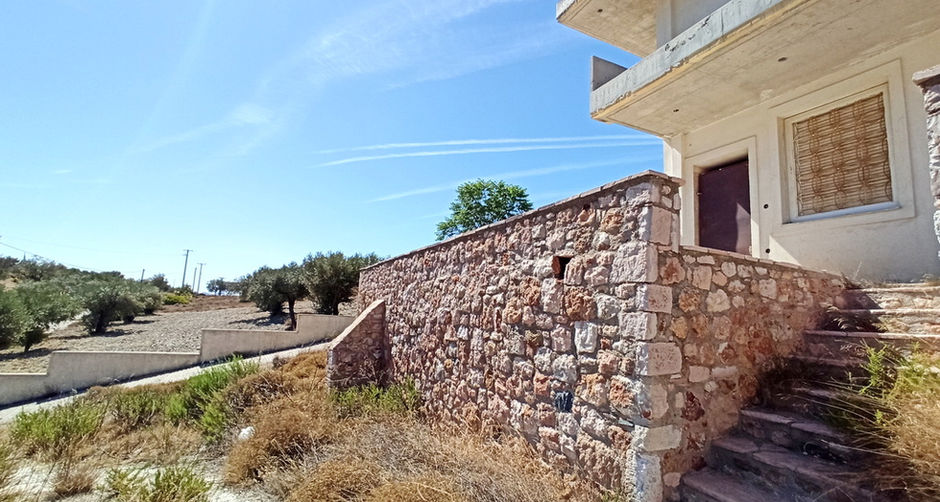 Detached maisonette-style house with a total area of 300m², built on a plot of 4,120 m², constructed in 2007. It is approximately 70% complete, spread over three levels, with balconies around the perimeter and large terraces at the front, from where one can enjoy the wonderful unobstructed view. Natural light floods the house all day long, while the openings allow air to flow through, keeping it cool during the summer months. It is a high-quality, modern construction, while its clever design gives the buyer the opportunity and flexibility to configure the use of the surfaces and individual levels according to their needs. The plot is fenced with a wall, except for the front, which is adorned with a beautiful stone wall. In addition, there are two independent storage rooms on the plot, as well as space for open parking. Access is via a 5-meter-wide asphalt road, which leads to the well-known beaches of Avlaki and Kakia Thalassa, located 8 kilometers away. The village of Kouvaras is 2 kilometers away, 3 km from Lavrio Avenue, 3.5 km from the town of Keratea, and a 20-25 minute drive from Eleftherios Venizelos International Airport and the port of Lavrio.