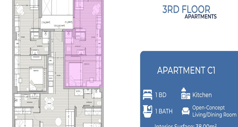 The development includes two 38 m2 apartments and one larger 62.14 m2 apartment, all thoughtfully designed to maximize space, comfort, and natural flow—perfect for professionals, students, or investors seeking a turnkey property in a highly accessible and vibrant neighborhood.