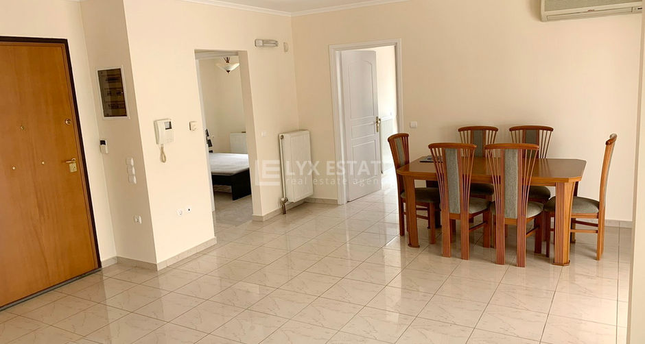 The apartment has an area of almost 70m², is located on the 5th floor (not a penthouse), is also corner, very bright, with many openings and includes a storage room in the basement of the apartment building (no parking space). The heating is autonomous natural gas, while two air conditioners and a fireplace complete the heating-cooling facilities. The equipment includes high-quality aluminum frames, awnings, and a security door. The kitchen is separate with access to the balcony, and there is the possibility of a second bedroom in the living room area.